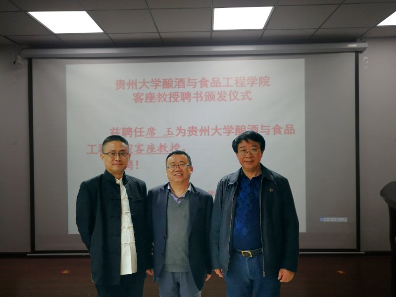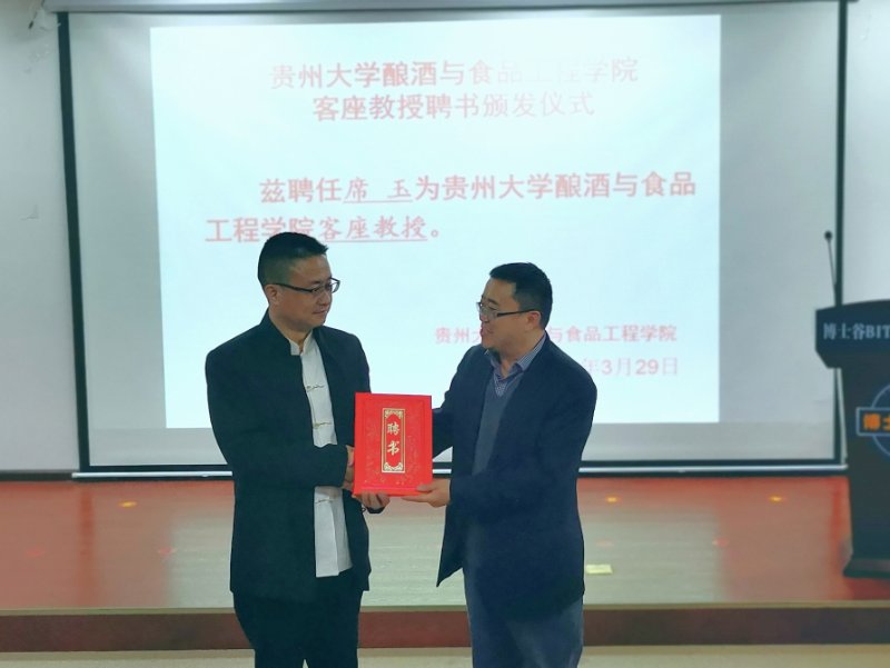 全球貴州博士俱樂部交流中心執行秘書長、高級工程師席玉表示:受聘貴州大學釀酒與食品工程學院客座教授非常榮幸,一定不負重望將自己畢生所學傳授給學生們,為打造醬香型白酒科技人才高地做出不懈努力。同時將充分運用重點實驗室設備進行檢析,為進一步指導生產揭示酒體風味與微生物菌群關系展開相關研究。