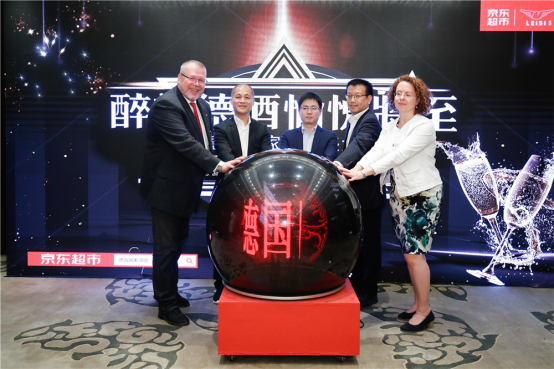 2019年5月6日, “醉美德酒 愉悅將至”——京東超市“德國國家酒館”開館簽約儀式在北京隆重舉行。當日,京東超市與德國政府經濟事務、交通、農業及葡萄工藝部的政府代表共同達成了戰略合作。此次京東超市“德國國家酒館”的啟動,可看作京東超市葡萄酒國際化戰略推進的又一重大舉措。