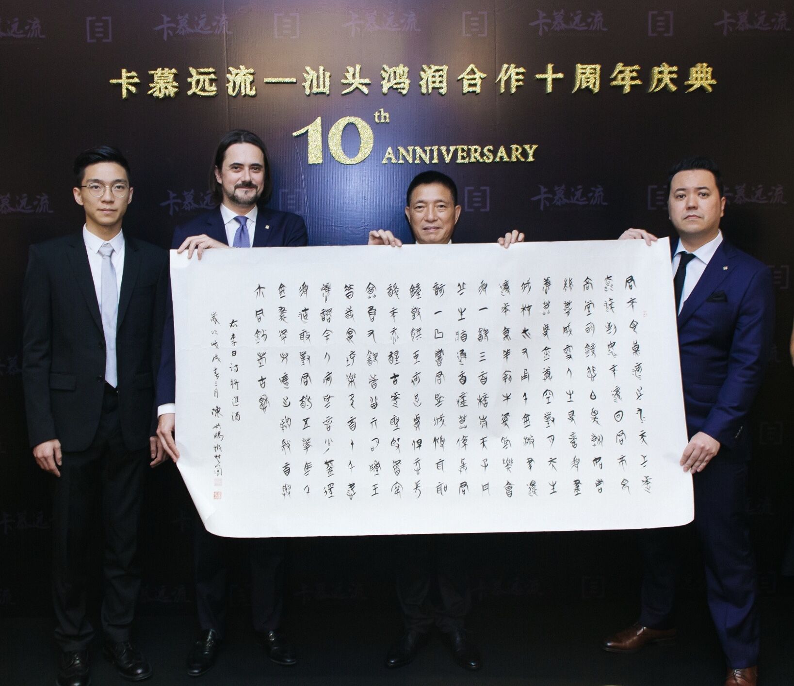 (廣東汕頭訊,5月10日)卡慕遠流酒業與汕頭鴻潤貿易有限公司于汕頭舉行了盛大的十周年慶典活動?骄茦I集團總裁Cyril Camus 西里爾·卡慕先生,卡慕遠流首席執行官Eric Dew 張啟泉先生、汕頭鴻潤貿易有限公司董事長邱國展先生,雙方高層悉數出席;仡櫴陙頂y手共進,砥礪同行的點滴,并一同展望未來,開啟全新合作篇章。