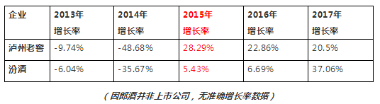但緊接著,風云突變……從2013年開始,白酒行業深陷調整困局,郎酒、瀘州老窖、汾酒業績嚴重下滑,甚至一度出現“腰斬”的局面。