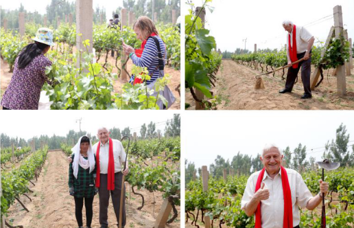 在金士國際酒莊參觀了世界葡萄酒歷史文化壁畫群、詩詞壁刻、精品釀酒車間、百年梨樹、精品釀酒葡萄園等。