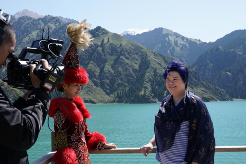 正在天山天池拍攝《品嘗中國》節目的葡萄酒大師趙鳳儀