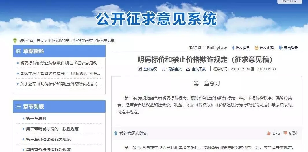 5月31日,國家市場監督管理總局發布了關于《明碼標價和禁止價格欺詐規定(征求意見稿)》公開征求意見的通知。并將征集意見稿向社會公布,征集意見。