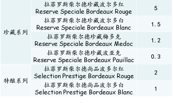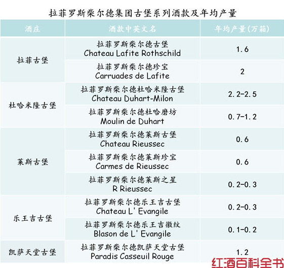 (1) 對拉菲的界說差異。凡是而言,我們所說的拉菲酒是指拉菲古堡(Chateau Lafite Rothschild)和拉菲珍寶(Carruades de Lafite)?墒抢粕杏辛硪粚咏缯f——環球酒業巨頭拉菲羅斯柴爾德團體旗下DBR(Lafite)葡萄酒。除了拉菲古堡和拉菲珍寶兩款最精彩的葡萄 酒外,還包羅杜哈米隆古堡(Chateau Duhart-Milon)、萊斯古堡(Chateau Rieussec)和拉菲精選系列等等,后者也常常被稱為拉菲酒。而“拉菲一年的產量僅為30萬瓶”說的僅是拉菲古堡(約1.6萬箱,即20萬瓶)和拉菲 珍寶(2萬箱,即24萬瓶)的產量,并不包羅拉菲羅斯柴爾德團體旗下的葡萄酒產量。