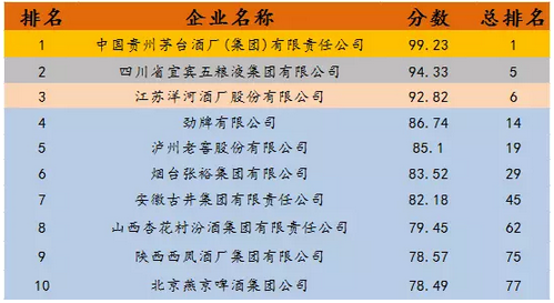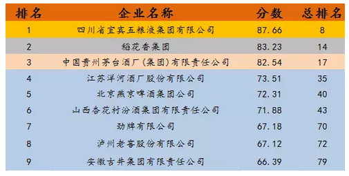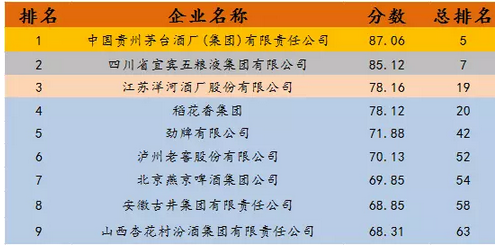 近日,中國輕工業聯合會下發《中國輕工業百強企業評估結果公告》,綜合實力酒企排名總體靠前,共計9家酒水企業入圍榜單。其中,茅臺、五糧液、洋河穩居前三甲,總榜排名分別為第五、第七和第十九名。其后依次為:稻花香、勁牌、瀘州老窖、燕京啤酒、古井、汾酒。