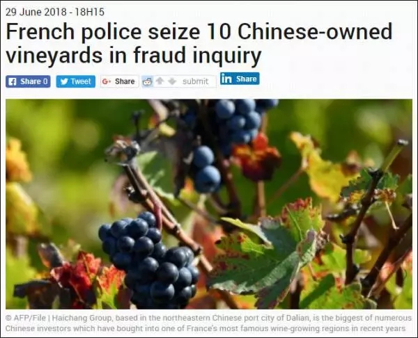 另據報道:海昌公司斥資5500萬歐元(約合4億元人民幣),收購了法國24家生產葡萄酒的酒莊,法國調查人員多年來一直在嚴密調查關注中。法國警方透露“涉案的10家酒莊,已經發現了一定數額的稅務犯罪包括洗錢、逃稅、偽造文件等”。