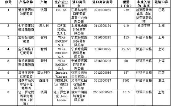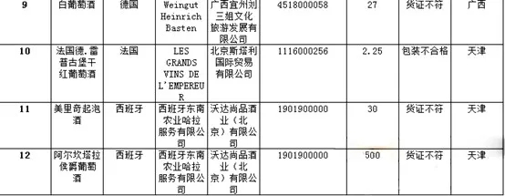 上半年12批次不合格進口葡萄酒在相關口岸退運或銷毀
