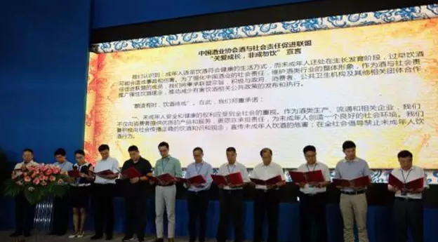 中國酒業協會在此次年會上對外公布了“關愛成長、非成勿飲”宣言,倡導聯盟內的酒企、經銷商不向未成年出售酒類產品;杜絕以未成年人為目標受眾的產品宣傳和誘導行為,不利用未成年人或類似未成年人形象作為廣告代言,在經營場所顯著位置設置不向未成年出售酒類產品的標志;對難以判明是否已成年的要求其出示身份證,明確產品標識,避免未成年人售誘導購買或誤買酒類產品。
