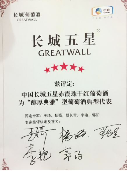 發布會上,與會專家還品鑒了長城五星赤霞珠干紅葡萄酒,對產品風格與當地風土相關性進行了討論,經多方面論證,認定沙城懷涿盆地產區為中國最具代表性的優質葡萄酒產區,長城五星赤霞珠干紅葡萄酒為中國“醇厚典雅”型葡萄酒的典型代表。