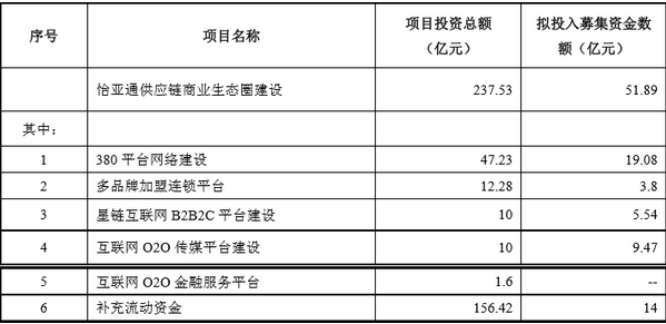 募集資金用途中,公司取消使用1億元募集資金投資于互聯網O2O金融服務平臺建設項目,同時對其他募集資金投資項目投資總額及擬投入募集資金數額進行適當調整,公司本次發行擬募集資金總額由不超過60億元調整為不超過51.89億元,發行數量不超過5億股。詳細的定增資金用途如下表所示: