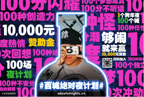假若你自認為自己乖戾難馴,夠另類夠玩鬧,且擁有異于常人的腦洞,并想在跨年夜“搞場大事情”,這一次就絕不能錯過!一年一度絕對伏特加的“百城夜計劃”,100個城市,100場跨年派對,只要你敢玩敢嗨敢鬧,就有機會被選中,獲得1萬元現金贊助及派對大禮包!