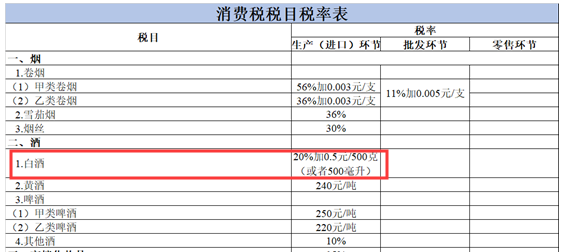 到了2017年進一步加強白酒消費稅征收管理,最低計稅價格核定比例由之前的“50%至70%”統一調整為60%。所以,從2017年至今,白酒消費稅一直是按照“從價稅按照生產環節價格(最低計稅價格為最后一級銷售單位對外銷售價格的60%)的20%、從量稅按照銷量每公斤1元計算”繳納,這與本次《征求意見稿》內容相一致。