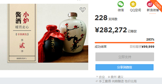 隨后11月23號,小爐第二季眾籌再次上線,同樣是在酒評網和董寶珍等的大力支持下,活動上線僅7個小時便完成了99999元的眾籌目標,最終以銷售額突破28萬元的佳績完美收官。