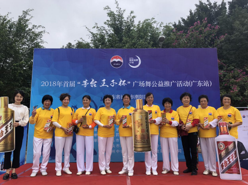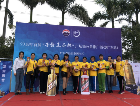 茅臺王子酒1999年上市,自此開啟了茅臺醬香酒的先河,茅臺醬香酒悄然“飛入尋常百姓家”。2014年12月24日,茅臺醬香酒營銷有限公司正式掛牌成立。“茅臺醬香,萬家共享”,12月27日,首屆“茅臺王子杯”汕頭站廣場舞公益推廣活動在潮陽體育中心廣場與上東浦文化廣場舉行。本站活動,由全國廣場舞健身活動推廣委員會和廣東省社會體育中心指導、共舞體育文化發展(北京)有限公司主辦、廣東昇躍體育文化有限公司承辦、貴州中體大健康體育文化發展有限公司、汕頭市老年人體育協會、汕頭市潮陽區老年人體育協會與汕頭市潮南區老年人體育協會協辦。冠名方代表貴州茅臺醬香酒營銷有限公司廣東三區鄭龍偉出席現場,與參培人員共同見證了一場為民、親民的廣場舞盛景。