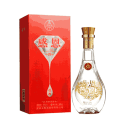 感恩(優釀),包裝盒正面繪制著一顆精致閃耀的鉆石,在寓意出“感恩酒”優良酒質的同時,更是充分體現了“感恩”這兩個字所包含的同鉆石一樣珍貴的情感意義。其采用優選的五種糧食,結合五糧液傳統釀制工藝,創新釀制出口感的柔順,優雅的窖香,芬芳的糧香,如繁花般絢爛綻放的獨特口感。