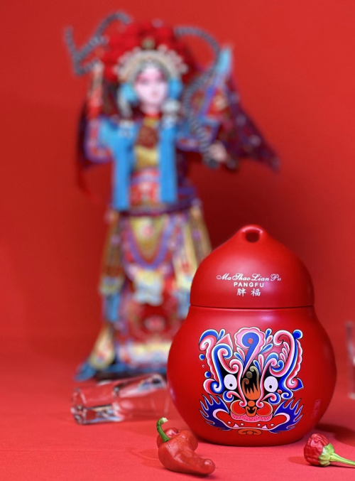 而福祿門神酒的瓶型設計同樣巧妙,瓶型選用葫蘆造型,整體圓潤大方、憨態可掬,同時既融合了龍鳳版馬勺的小孔設計,也將胖福“體態豐盈”的富貴美感發揮了淋漓盡致。整體來看,福祿門神酒富態豐盈的葫蘆造型更添“福祿”之美意,同時搭配通體純正的中國紅色調,熱情奔放、喜慶祥瑞氣氛,天然讓人與之親近。