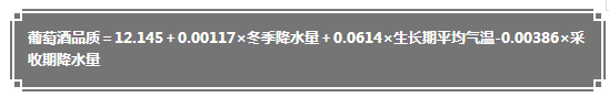 不過,普林斯頓大學計量經濟學家奧利•阿什菲爾特教授通過研究1952年~1980年期間波爾多地區的氣象資料,對照拍賣行的波爾多葡萄酒價格曲線,利用計量經濟學上的橫截面數據回歸分析法,推導出一條葡萄酒品質公式: