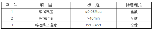 接酒過程中,要控制好酒的溫度,當接酒溫度低于或高于規定標準時,調節蒸汽壓力或冷卻水流量,適應接酒終止溫度要求。控制好各輪次蒸餾時間,使糧醅逐步糊化。