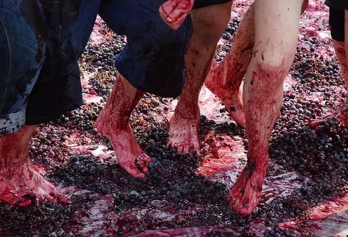 用腳踩踏葡萄在很多文明里是充滿儀式感的行為,古羅馬人以此來慶祝葡萄的豐收,這也讓葡萄酒與一般的果酒區分開來,顯得更加浪漫、珍貴。