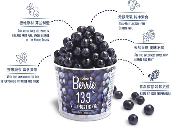 芬蘭80% 左右的國土被森林覆蓋,產出全球近40%的野生藍莓。在古代芬蘭,野生藍莓被譽為“不老靈丹”,其含巨量花青素,是人工種植藍莓含量3-5倍。同時含有豐富的維生素、礦物質、脂肪、膳食纖維等有益健康成分。芬蘭國家福利及衛生研究院更是倡導公民每日食用100克北歐漿果的全果。芬蘭漿果科學家更是呼吁,避免食用果汁或者提煉的膳食補充劑。北歐漿果全果食用,生物利用度更高,身體吸收更全面。