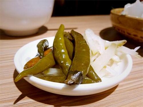 驢肉脂肪少,瘦肉多,單吃瘦肉未免寡淡。會吃的老饕往往會要求師傅在驢肉中額外加一些肥肉或者添一勺濃濃的驢肉湯來調味兒。而老保定的當地食客還會搭配一些新鮮的青椒,或者腌制好的咸菜進行佐餐,這樣吃法不但驢肉香味兒更足,還會因為青椒或者咸菜的加入讓口感更加清爽而不會油膩。