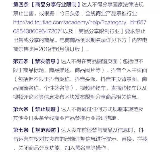 6月20日,抖音客戶端公布了6月最新修訂版《內容電商禁售類目》。抖音在官方公告中表示,這一舉動是為了“保障抖音用戶權益,打造綠色健康的購物車分享環境”,因此嚴格限制了商品分享行業和類目。