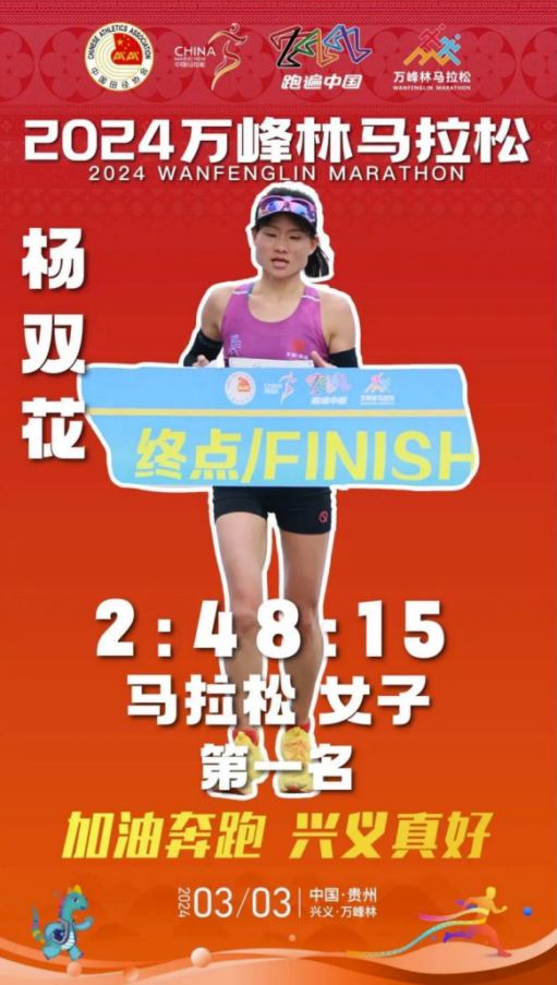 2024年3月3日,對于茅源賴祖跑團的選手楊雙花來說,是一個值得永遠銘記的偉大時刻。這一天,她在2024萬峰林馬拉松比賽中,以2小時48分15秒的優異成績,拿下了人生中的第一個全程馬拉松冠軍,在超越自身極限的同時,證明了自身的價值與實力。雄關漫道真如鐵,而今邁步從頭越。在漫漫前進路上,實現突破的何止楊雙花,茅源賴祖又何嘗不是呢,在董事長余方開的帶領下,茅源賴祖不斷挑戰自我極限,達成了一個又一個看似不可能完成的目標。