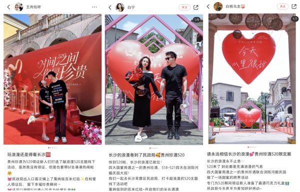 5月18日活動開啟后,隨著打卡的情侶越來越多,也逐漸在小紅書和抖音等平臺引發熱烈討論。520當天,除了領證的新人,也吸引到了一眾大咖博主親臨現場打卡種草,由此帶來一波為珍愛打call的浪潮。這份超標的浪漫,從長沙蔓延到了全網。