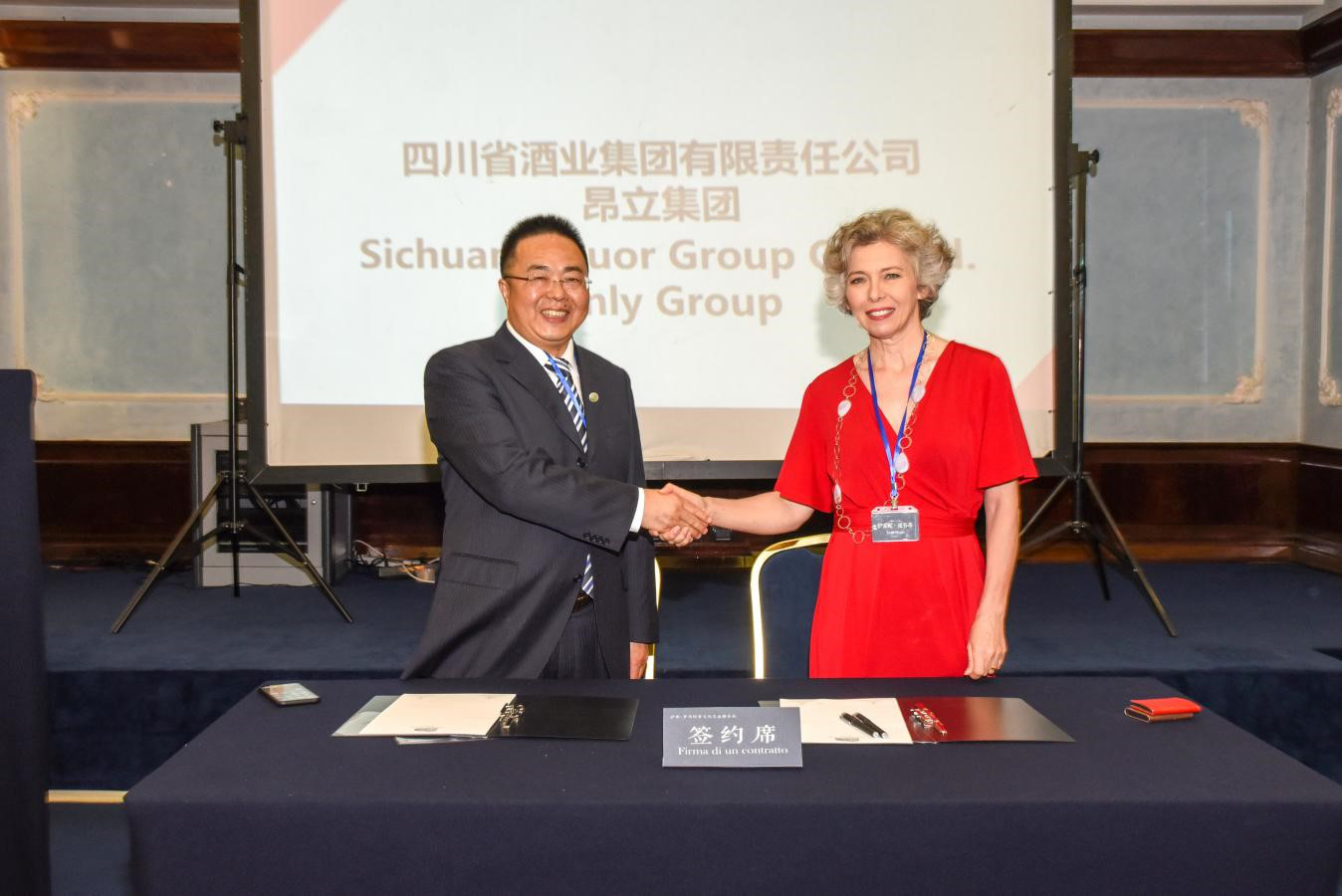 意大利國家眾議院前議長、意大利意中發展基金董事局主席、意大利對華友好協會主席、昂利集團董事長Irene Pivetti(伊雷妮·皮韋蒂)女士對瀘州市人民政府及川酒集團的到付,表示熱烈歡迎。Irene Pivetti女士表示:“隨著意大利一帶一路合作備忘錄的簽署,未來,越來越多的當地企業將與中國合作,與瀘州合作。”