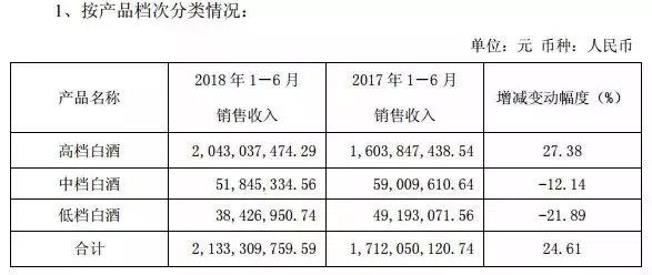 與此同時,提價策略也助推了口子窖在利潤層面的增長。半年報顯示,口子窖高檔產品銷售額持續高增長,上半年口子窖高檔產品銷售收入20.43億元,高檔產品銷售占比為94.63%,增幅達27.38%,而中檔和低檔白酒出現大幅降低,因此2018年上半年,口子窖實現凈利潤7.12億元,同比增長達 39.45 %。幾乎與口子窖去年前三季度的7.33億凈利潤持平。