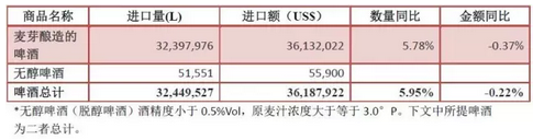 本月進口啤酒量3245萬升,同比增長6.0%,進口額3619萬美元,同比基本持平。根據海關數據調整,啤酒現在包括“麥芽釀造的啤酒”和“無醇啤酒”2項。其中,新增的無醇啤酒本月進口量為5.2萬升,進口額為6.0萬美元,均價1.08元/升,均無同比。