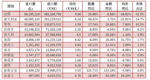 (二)原瓶裝葡萄酒進口來源地情況