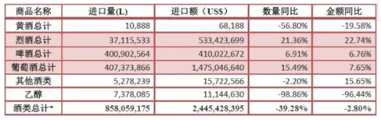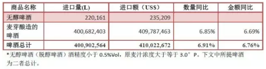1-7月,進口啤酒量額小幅上行,其中,進口量4.0億升,同比增長6.9%,進口額4.1億美元,同比增長6.8%。