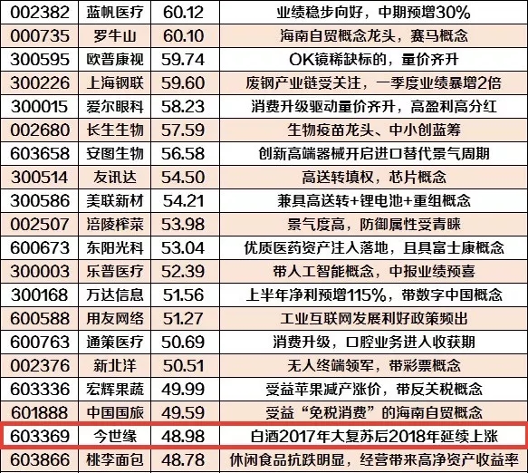 優中取優,在剔除上市未滿一年的次新股后,21財經披露了2018年上半年最牛100股名單。值得注意的是,在這份名單中,有26只來自生物醫藥行業,占比四分之一;11只來自食品飲料,其中“喝酒”股5只榜上有名。