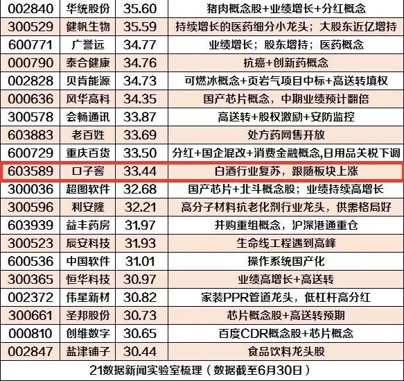 上半年股價增速最快的5只“喝酒股” 竟然是它們