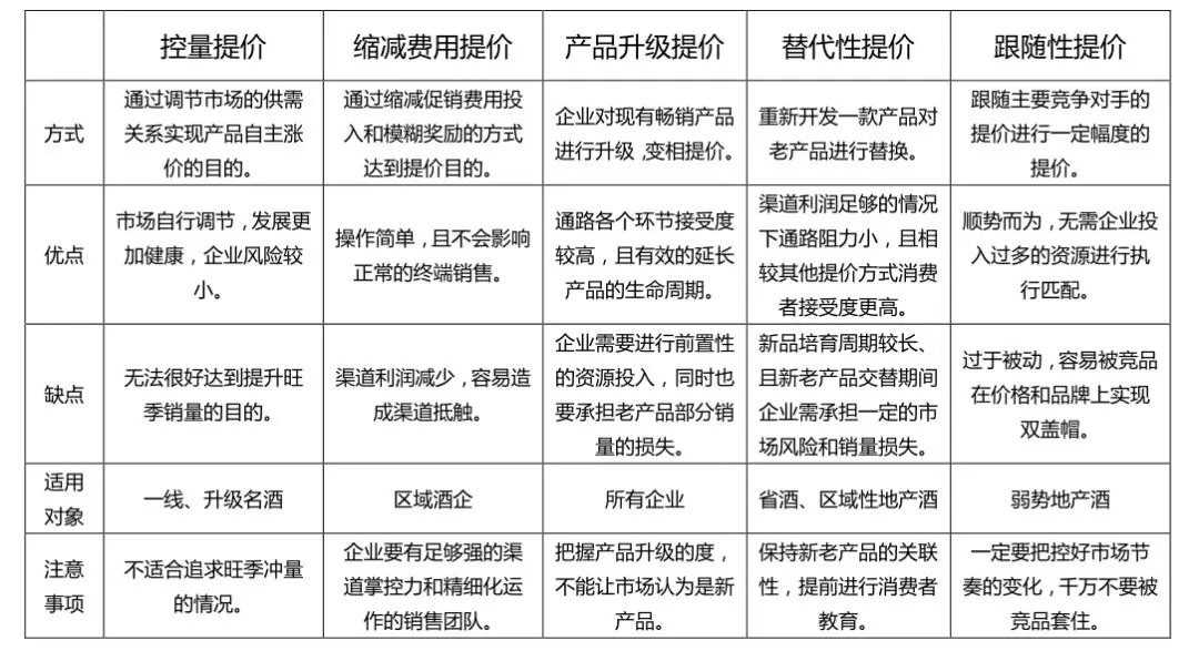 選擇旺季漲價,根據筆者對市場的研究,漲價的方式方法、優缺點及適應對象主要有以下幾種,企業可以根據自身情況及戰略戰術目的進行選擇和匹配: