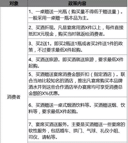 根據對目標市場的調查根據競品的婚宴政策進行分析,結合自身品牌的實際情況進行婚宴政策的制定,常見的婚宴政策有: